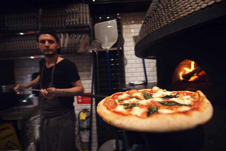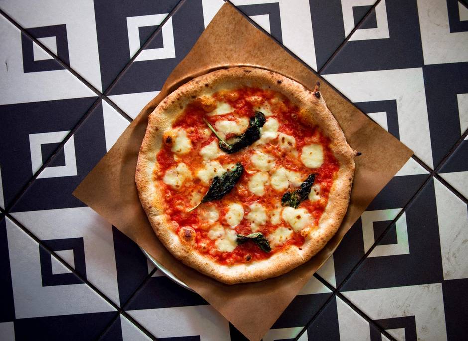 A wood-fired pizza.