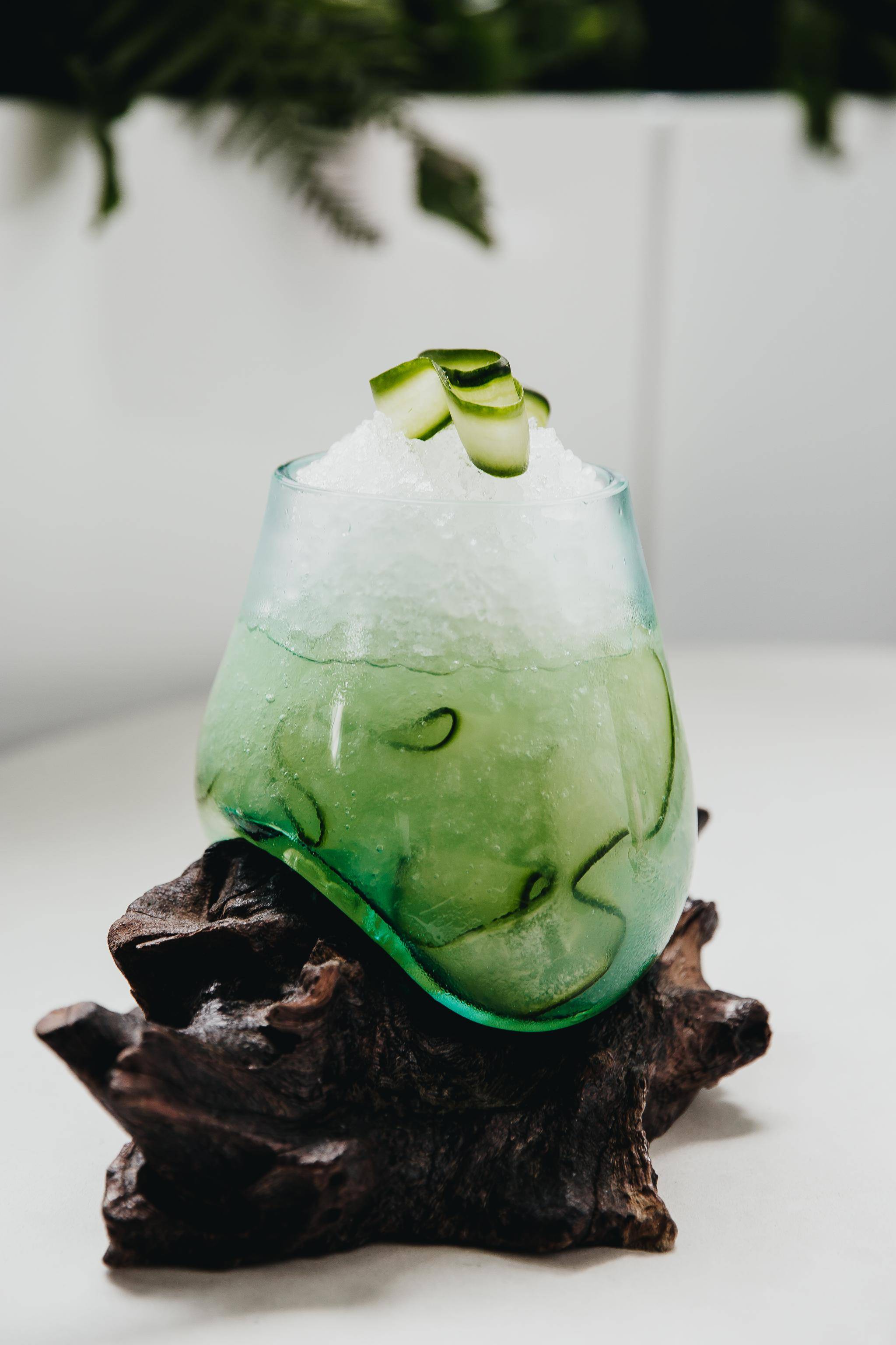 Deep Cove, for example, is a refreshingly briny gin slushy that mysteriously doesn't melt. Requiring two hands to hold aloft, the drink is served in a bespoke goldfish beaker, custom-molded onto a driftwood holder, tinted mermaid-goggle-turquoise by algae and garnished with slithery seaweed-like cucumber ribbons. While fun and impressive, your taste buds will likely be just as entranced by some of the more moderately priced elixirs mixed with tingly electric-daisy tinctures, clarified milk and alderwood-smoked tea.