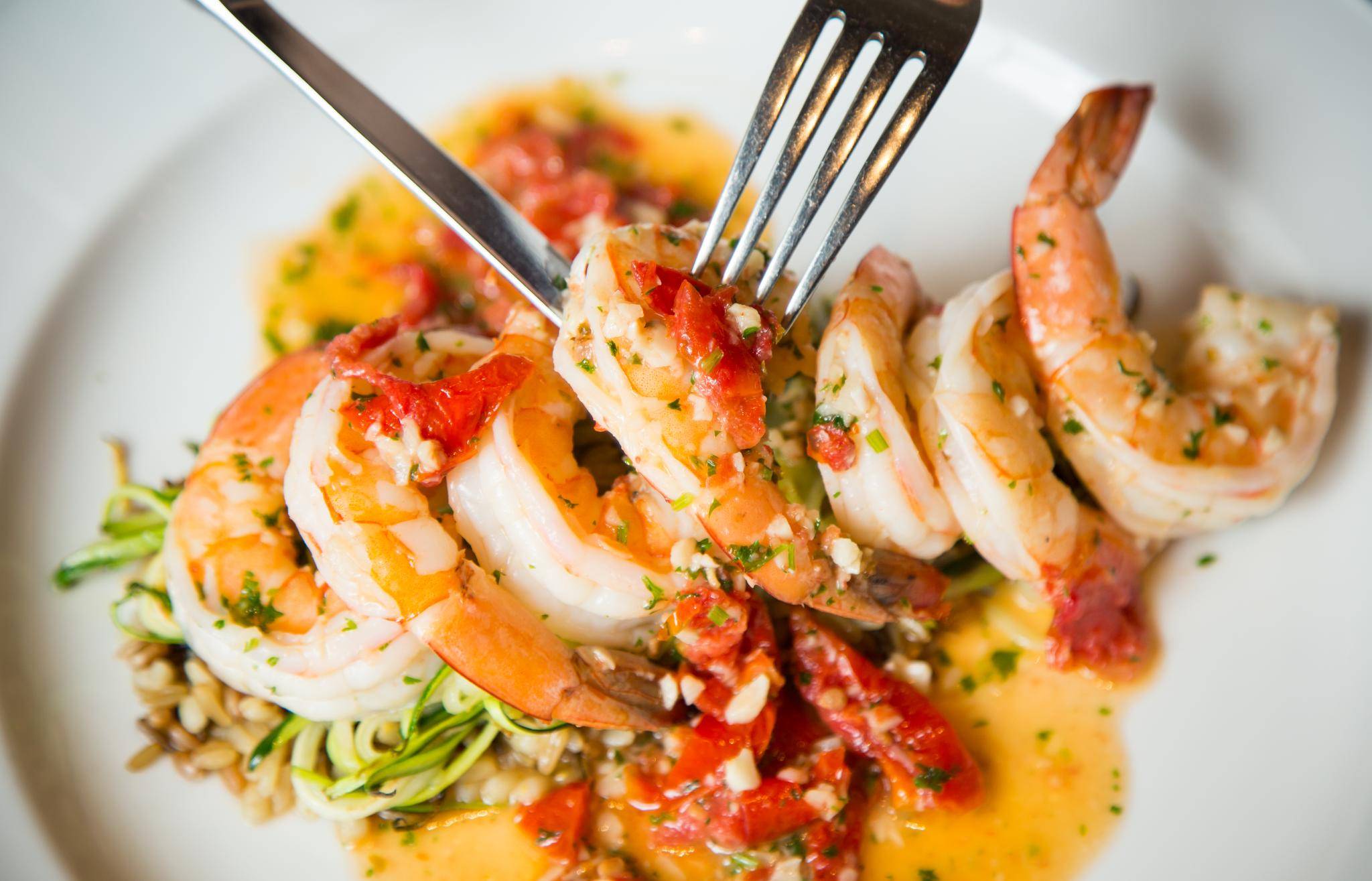Tearing through a mess of plump wild prawns swimming in satiny, brandy-flamed Provencal sauce, it occurred to me there aren't many local restaurants cooking with this much rich butter – while still catering to modern dietary preferences by plating the dish with crisp zucchini and butternut-squash spaghetti in place of potatoes.