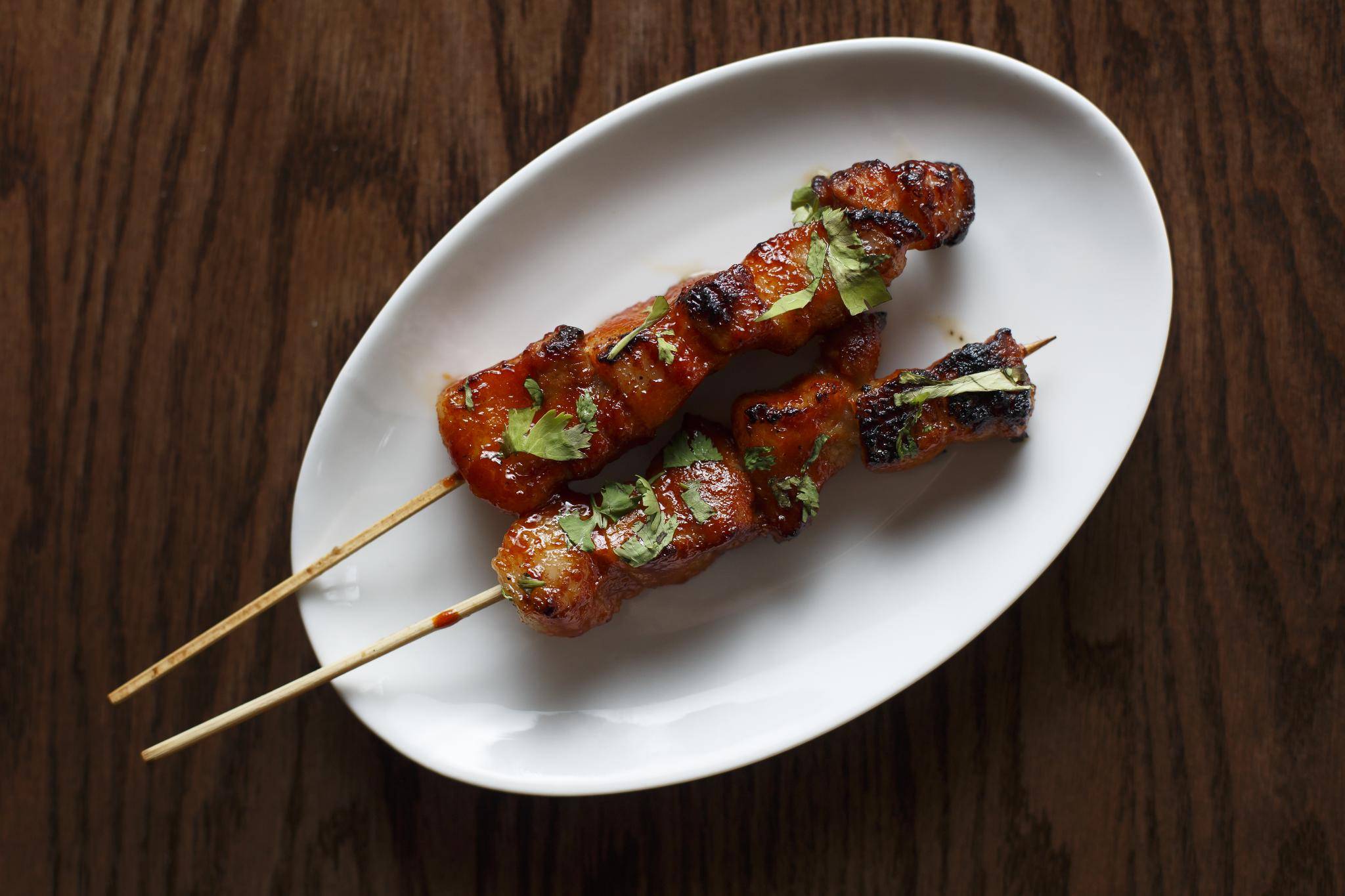 Playing to the popularity of Asian flavours are aforementioned chicken wings, the charcoal-grilled skewers such as pork belly in a thick gochujang glaze, candied nombu to snack on, as well as a plate of slightly overcooked gai lan with a sharp sherry vinaigrette and garlic chips that are all too bitter.