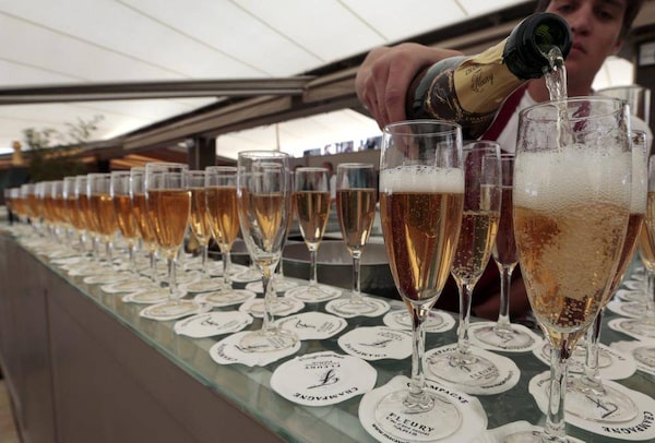 Champagne being poured into flutes at a beach bar during the 2013 Cannes Film Festival.ERIC GAILLARD/Reuters