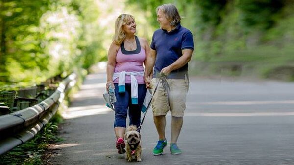 Michael Calderone, walking with his wife Caroline, had his colorectal cancer removed without the need for an incision.