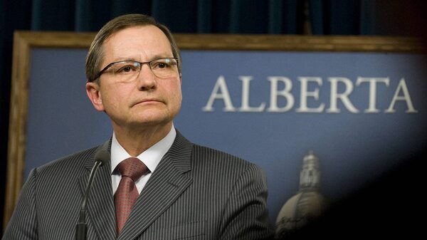 Alberta Premier Ed Stelmach talks to reporters in the media room at the Alberta Legislature in this file photo from Jan. 13, 2010John Ulan