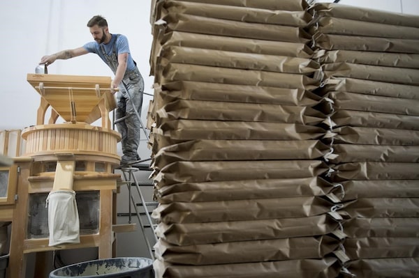 Christian Bendsen, production manager and head miller of Flourist works the stone mill at their production facility in Vancouver.The Canadian Press