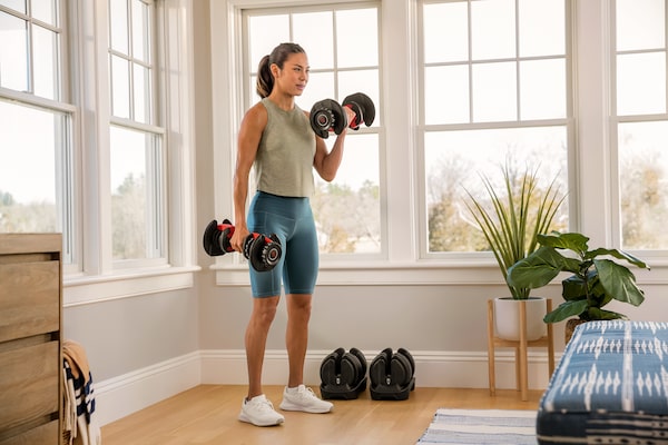 Of all the different series in the PowerBlock family, the Elite offers the best value for your money. Starting at around $500 per pair, they’re priced reasonably and are built tough. The best feature, though, is their versatility. Out of the box, PowerBlock Elites provide a weight range of five to 50 pounds; get a hold of an expansion kit and the resistance goes up to 90 pounds.