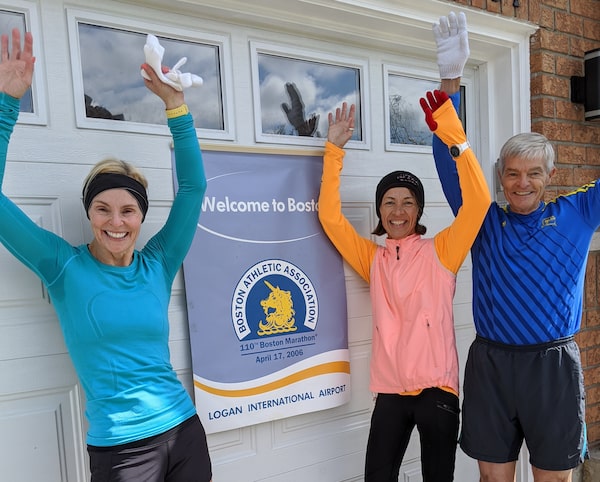 Over three days in April, 35 Nomads and some family members ran their own virtual relay. Following a meticulous spreadsheet, they ran in 46 shifts, doing solo legs of varying lengths – from a single mile to the marathon distance of about 26 miles – on their individual treadmills or in neighbourhoods. They aimed to tally 550 miles together – the distance from Mississauga to the official start line in Hopkinton, Mass., plus the marathon itself.