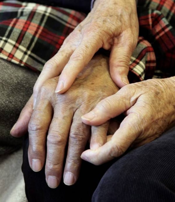 A caregiver holds the hand of an Alzheimer's patient. A University of Toronto researcher's findings on removing age bias from Alzheimer's research is much more complicated with race.Ben Margot/The Associated Press