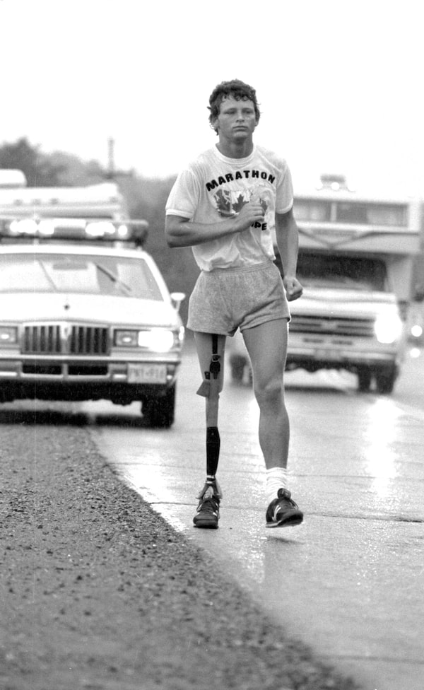 After 21-year-old Terry Fox was diagnosed with bone cancer, he ran a marathon a day from St. John's, N.L. until he was forced to end his journey in Thunder Bay, Ont./The Canadian Press