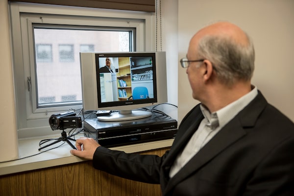 At his psychiatric clinic at QEII Health Sciences Centre in Halifax, Allan Abbass is showing video clips of his therapy sessions.