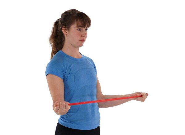 Light or medium resistance bands work best. If you can easily hit 20 repetitions, try a heavier band. Aim for two to three sets of 10-20 reps.