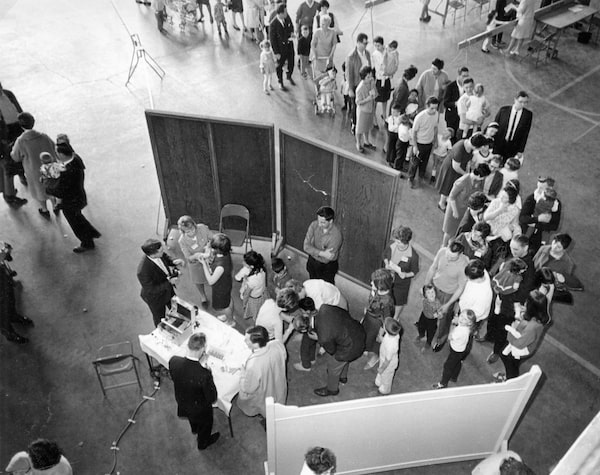 April 16, 1967: A lineup of children forms at one of the five measles immunization clinics in London, Ont., in the first one-day blitz on the disease in Canada.James Lewcun/The Globe and Mail