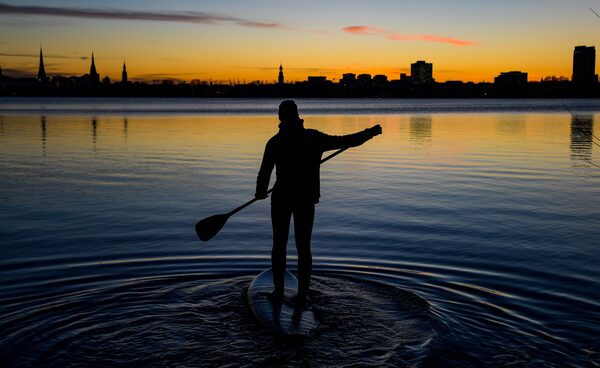 A stand-up paddler guides his board through the water at the Outer Alster Lake in northern Germany in January, 2018. For me, the opportunity to get outside in a serene natural setting prompted me to pick up a used kayak in an end-of-season sale a few weeks ago.AXEL HEIMKEN