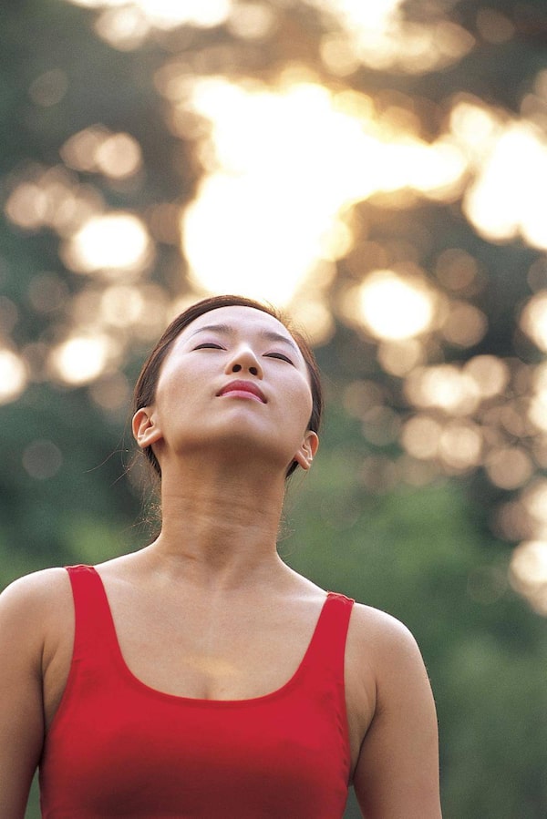 To breathe better, start by lying on your back. Place a light book on your stomach, with one hand on the side of your waist so that your fingers reach slightly under your lower back. Place your other hand on your upper chest and neck. Breathe into your diaphragm, expanding the air equally into the hand that is placed on your side and into your stomach. The book should rise up slightly toward the ceiling and the hand on your chest should not move. The image I use is an expanding umbrella: Aim for your midsection to expand in three directions like a well-functioning umbrella – not like a wind-beaten umbrella that only expands in one direction.