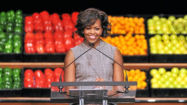 US First Lady Michelle Obama speaks as she joins business leaders from Walmart, an American public multinational corporation that runs a chain of large discount department stores and a chain of warehouse stores, for an announcement impacting food formulation, availability and affordability in Washington, DC, on January 20, 2011.Mandel Ngan/AFP/Getty Images