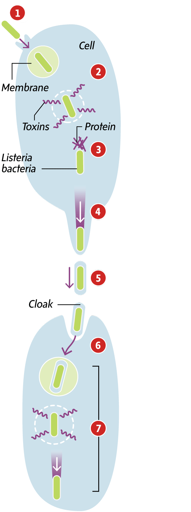 When Listeria approaches a neighbouring cell in its new disguise, the cell sees the membrane-surrounded Listeria as cellular garbage and ingests it as a regular cleaning activity