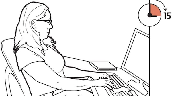 Set a (quiet) alarm to beep every 15 minutes for four hours. Every time it goes off, take note of your posture.Carrie Cockburn/The Globe and Mail