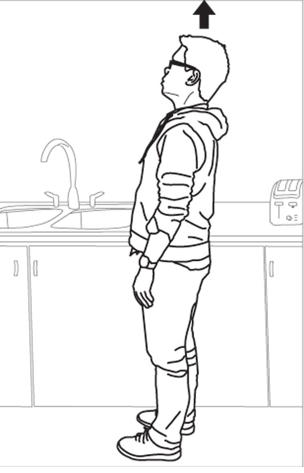 You can start sitting or standing. Make sure you aren’t slouched. Look straight ahead and imagine a piece of string is pulling the crown of your head to the sky.Carrie Cockburn/The Globe and Mail