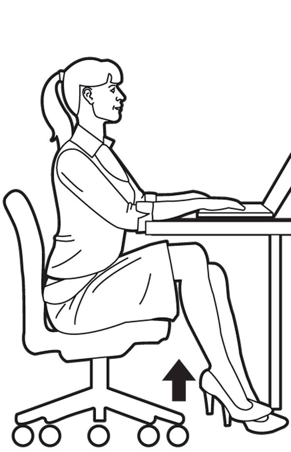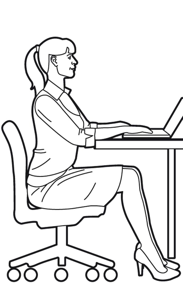 2. Engage your abs to hover one foot off the floor for as long as you can. Switch feet and repeat. It’s vital you don’t move your pelvis, shoulders or head. This exercise is too easy if the rest of your body isn’t as still as a statue. If done right, co-workers looking at you won’t even notice that your leg is hovering off the ground.Trish McAlaster/The Globe and Mail