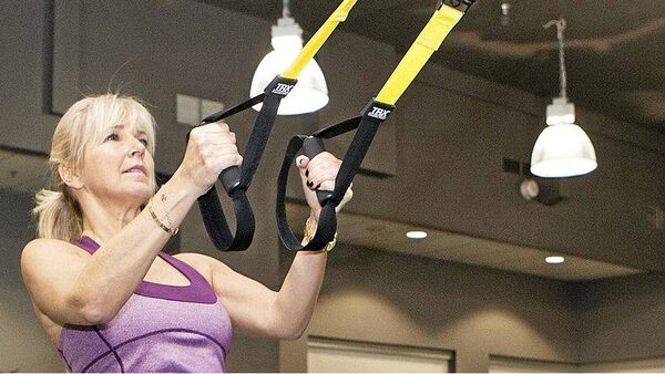 Karen O'Connor, president of the Canadian Sir Edmund Hillary Foundation, trains on TRX at the Gary Roberts High Performance Centre and Fitness Institute.Della Rollins