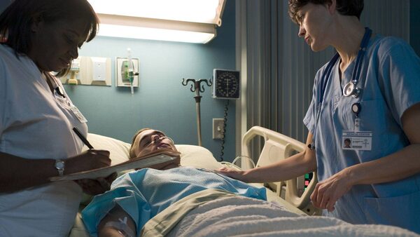 A woman is suffering from an advanced stage of ALS that has left her irreversibly paralyzed from the neck down and unable to swallow or breathe on her own. By communicating through eye blinking, she asks her physician for a lethal injection.