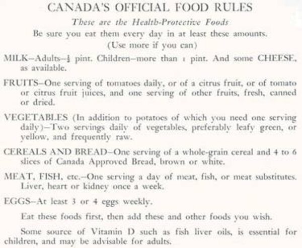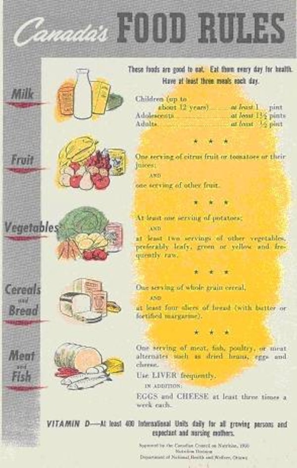 In 1949, the Canadian Council on Nutrition clarified the Food Rules. The guide is criticized for being updated too infrequently and focusing too much on industry interests.