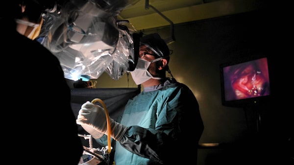Dr. Michael Tymianski, performing brain surgery on a patient at Toronto Western Hospital.