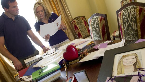 Luke and Stephanie Richardson look through countless messages of condolence and suport at their home in Ottawa, Ont. on Aug. 15, 2011. Their daughter Daron Richardson, 14, took her own life in November.Kevin Van Paassen/The Globe and Mail