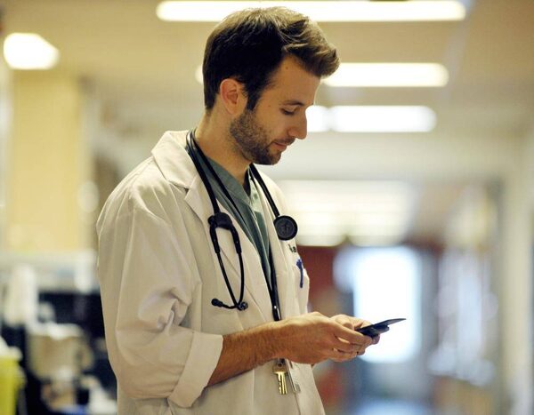 Within a minute, the nurse receives an alert that the doctor has read the message and then, a few seconds later, a response by text, even though the doctor is making rounds at the time.
