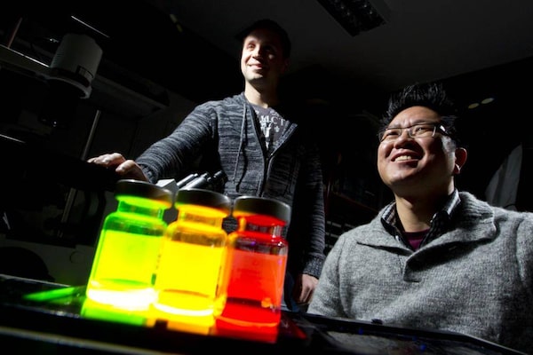 Warren Chan, right, and Kyryl Zagorovsky in their research lab in the University of Toronto.