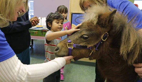 Patients pet Lunar, one of two mini-horses visiting the pediatric unit at Rush University Medical Center in Chicago in November.M. Spencer Green/The Associated Press