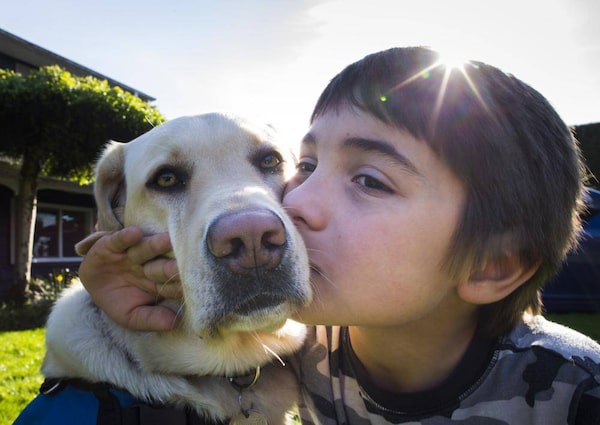 Jason Gubbels, an eight-year old boy who has autism, with Echo, an autism support dog, at their home Richmond, B.C. on April 29, 2014.John Lehmann/The Globe and Mail