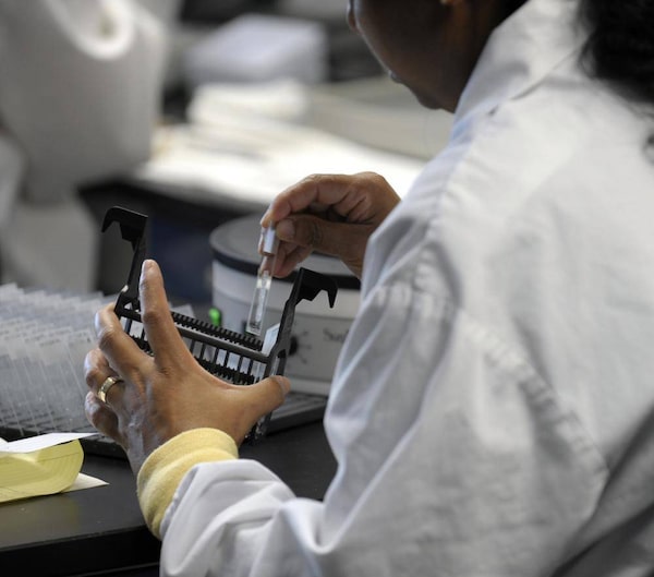 Medical technologists preparing sections of biopsy samples.FRED LUM/The Globe and Mail