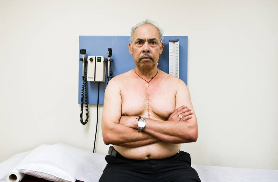 “It’s impossible to put [on] my shoes, my socks. I’m working sometimes outside, [I do] the roofing, and [going] up and down the ladders is very difficult,” he says. He works in spite of the pain; he doesn’t want to let his hospital payments slip.