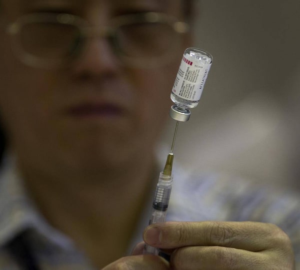 A dosage of flu vaccine is measured into a syringe flu during a clinic conducted by Toronto Public Health at the Scarborough Civic Centre on Jan. 9, 2013.Peter Power/The Globe and Mail