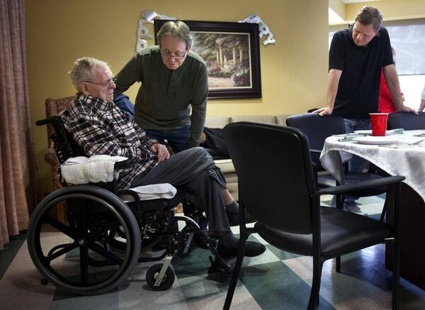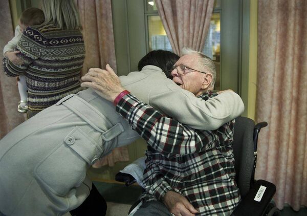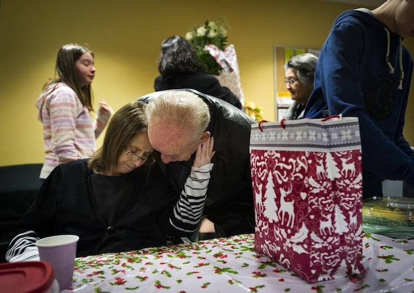 Patient Donald Parr is comforted his sons Bob Parr, centre, and Steve Parr while the family gathered for a Christmas Day celebrations at Sunnybrook Health Sciences Centre in Toronto, Ontario Toronto, Ontario, Wednesday December 25, 2013. It would be Parr's last Christmas with his family.Kevin Van Paassen/The Globe and Mail