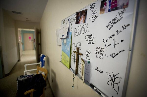 A message board in Nora Wright's room at Sunnybrook Health Sciences Centre in Toronto, Ontario, December 20, 2013. Wright died Friday January 3rd, 2014 after a long fight with cancer.Kevin Van Paassen/The Globe and Mail