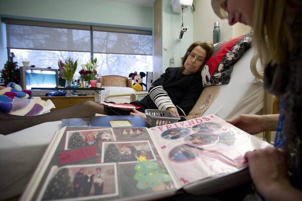Nora Wright flips through a scrapbook with the help of a care worker in her room at Sunnybrook Health Sciences Centre in Toronto, Ontario, December 20, 2013.Kevin Van Paassen/The Globe and Mail