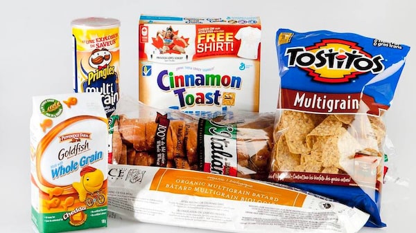 Whole grain: Canada does not have a standard definition for what "whole grain" means, or how much needs to be included in a product for it to carry a whole-grain label. Products should list whole grains as their first ingredient if they claim to be made with whole grains. But packaged products, such as chips, crackers and bread, could also include refined flour.