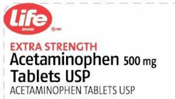 The six products being recalled are acetaminophen 500 mg extra-strength tablets, acetaminophen, caffeine and 8 mg codeine phosphate tablets, allergy and sinus relief extra-strength tablets, daytime sinus-relief extra-strength tablets, muscle and back-pain-relief extra-strength tablets, and sinus medication extra-strength night tablets.