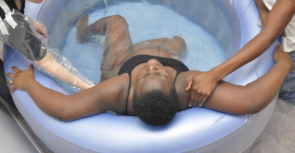 A mother-to-be prepares to deliver her baby in birthing tubMary Gascho/Getty Images/iStockphoto