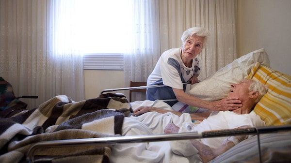Genia Kuszper at her husband Stefan's bedside in their home July 27, 2011. After efforts to fight his cancer failed his family brought Stefan home for his last days. He died the following morning. Genia and Stefan were married 65 years.Moe Doiron/The Globe and Mail