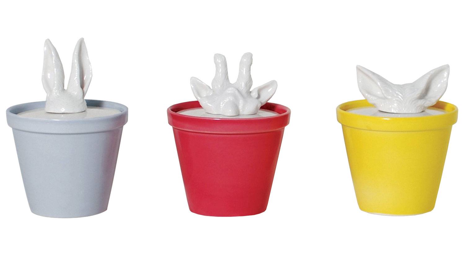 Imm Living’s Carousel containers are one part Beatrix Potter one part Salvador Dali, with cutesy animal ears sprouting from colourful mini-planters. The poppy aesthetics are perfect for kids. The porcelain construction adds adult sophistication. $27. Through imm-living.com.