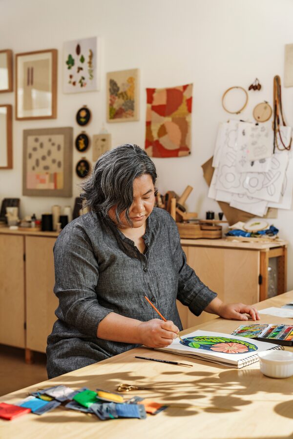 Since launching Bookhou in 2002 with her husband John Booth, an architect who creates fine wood objects, Khounnoraj has cultivated a distinct role as teacher and cheerleader to a new wave of creatives who otherwise might never try traditional techniques. Her 2017 video showing punch needling, which is akin to rug-hooking, went viral and led to her debut book, Punch Needle. “People love permission to delve into something they’re not familiar with,” says Khounnoraj, who has taught at the Art Gallery of Ontario, OCAD University and Sheridan College. “Certain techniques, I don’t want them to get lost.”