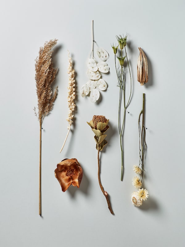 “It’s just been in the last two years we’ve started seeing dried florals come back within the home decor space,” says Etsy trend expert Dayna Isom Johnson. In addition to bouquets, a search of the e-commerce platform reveals framed pressed flowers being offered up as wall art and dry sprigs ensconced in glass herbariums for tablescaping. Prickly Proteas, spritely yellow Billy Buttons and orange Chinese lanterns are some of the more eye-catching stems. “People are wanting to bring more of the outdoors in, and dried florals can just add a really beautiful texture to your space,” says Isom Johnson.