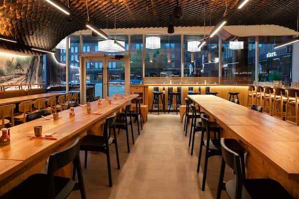“We do love the feeling of a glowy red lantern in an Izakaya restaurant, but we wanted to avoid the tropes,” says Peter Wünsch, founding partner and chief strategic officer at Breakhouse, the Halifax branding and architectural agency behind the design.