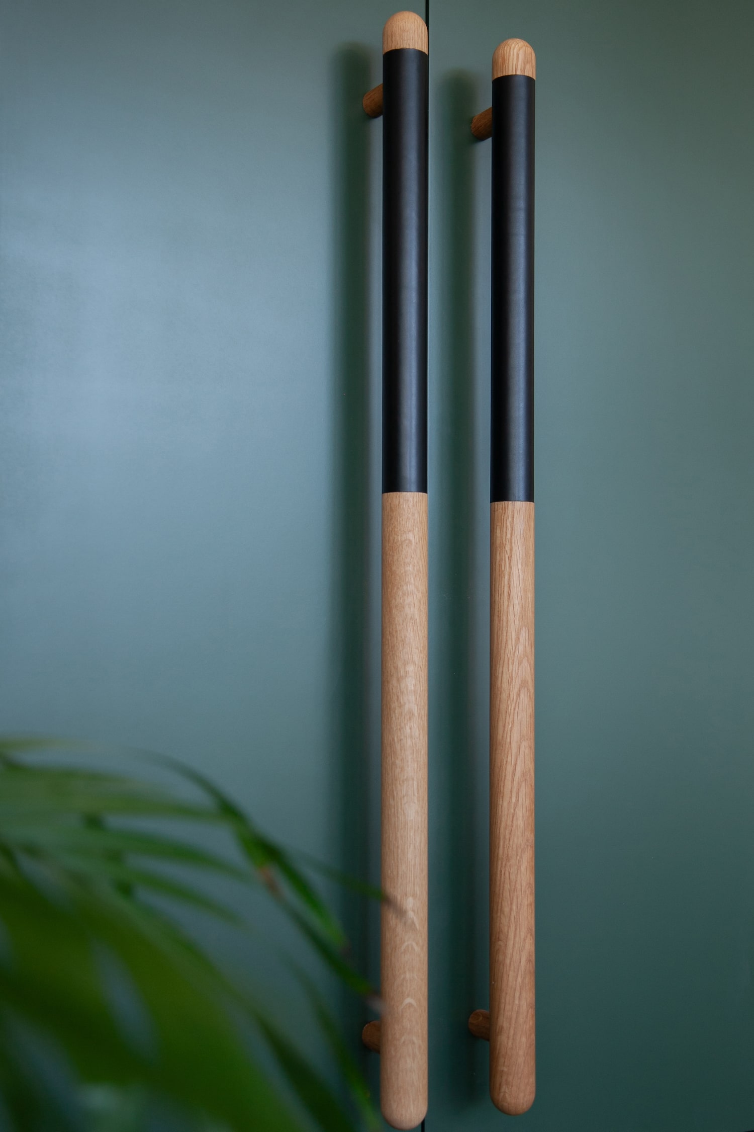 As Day and Chapman have learned, less complicated is more desirable. “Nude” bar pulls are made from rounded plain wood in six different species, while “dressed” or “half-dressed” versions involve a full or partial leather wrap.