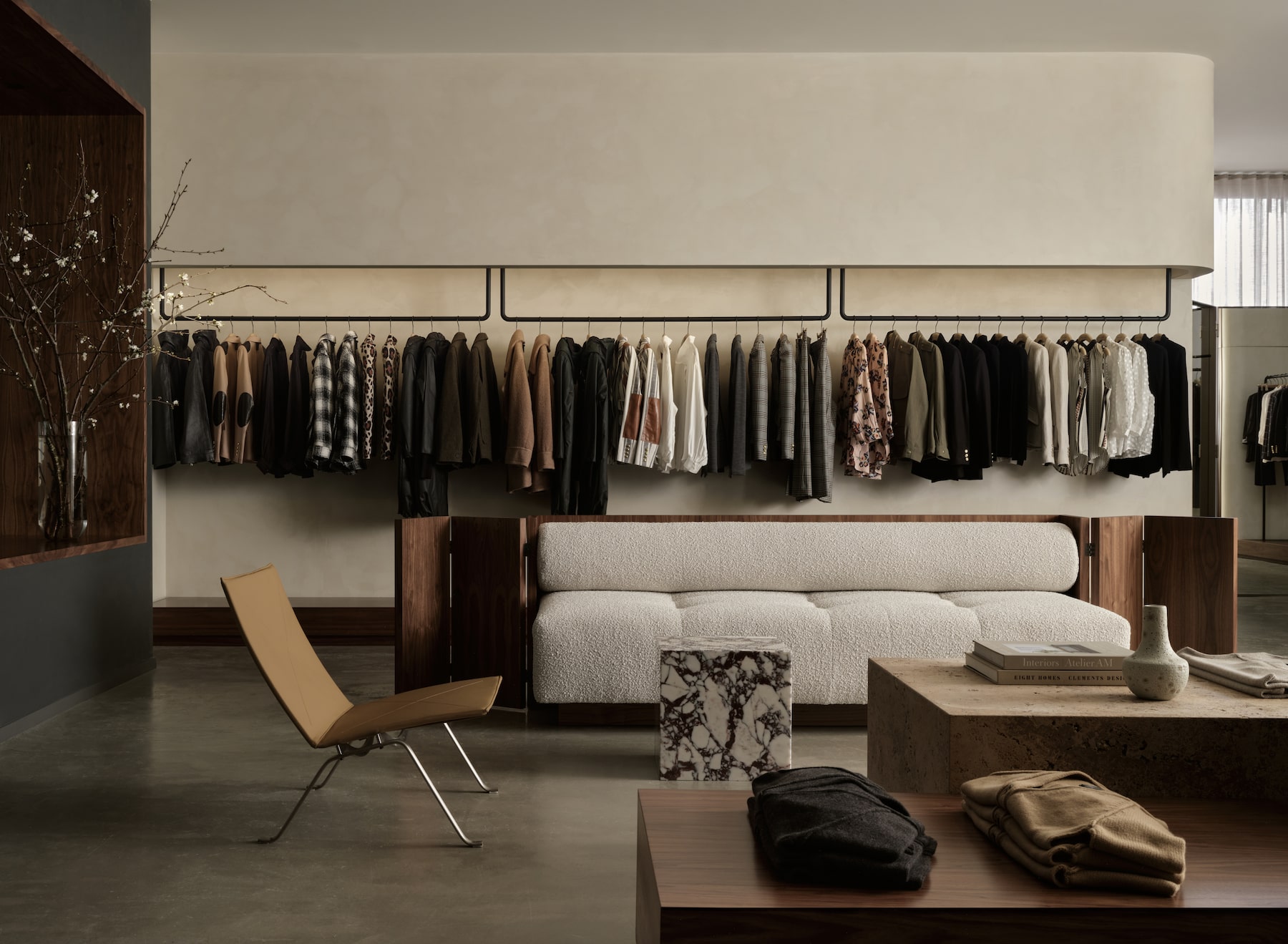 The latest store from fashion label Smythe isn’t just the brand’s first outpost in Western Canada, opened during its 20th anniversary year. It is also the location that brought resimercial style, a term that refers to the trend of bringing the comforts of home to a commercial space, to Calgary’s Chinook Centre.