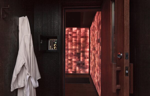 The interior of a WelPod has radiant floor heating and is lined with thermal-trapping, Himalayan crystal salts.Courtesy of Circle Wellness Stud