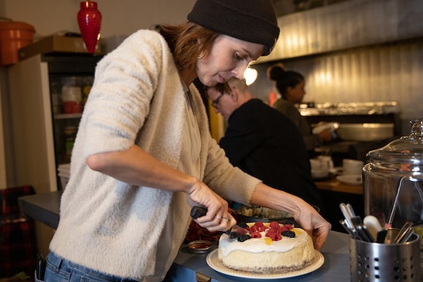 Saskia Weber, in charge of dessert, serves her New York-style cheescake.Anabel Burin/The Globe and Mail