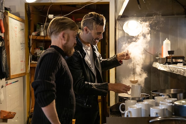 Francois Leblanc and Jason Behrmann prepare and serve their dinner club dish: seafood soup inspired by the 'Surf and Turf' theme of the month.Anabel Burin/The Globe and Mail